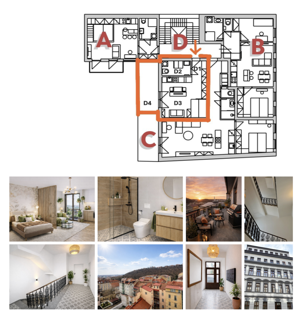 Byt o celkové ploše 39,70 m² umístění ve 4. nadzemním podlaží s výtahem, orientace jižní do vnitrobloku, úchvatný panoramatický výhled na město a do zeleně.